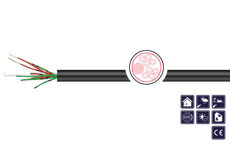 | Min. bending radius fixed: | 7,5 x d |
