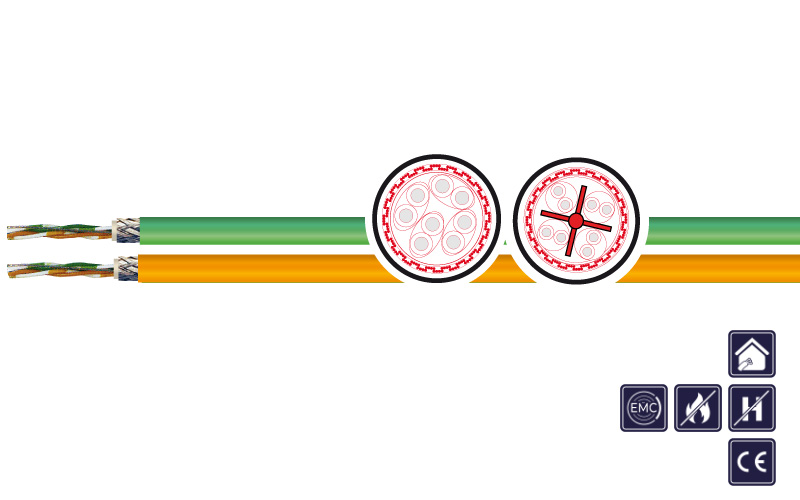 as a data cable for the transmission of digital and analog signals for Industrial Ethernet, ICT network applications and also in PROFINET systems. For fixed applications in industrial, highly combustible or fire-risk industrial areas for industrial machinery, decices and cabinet wiring.