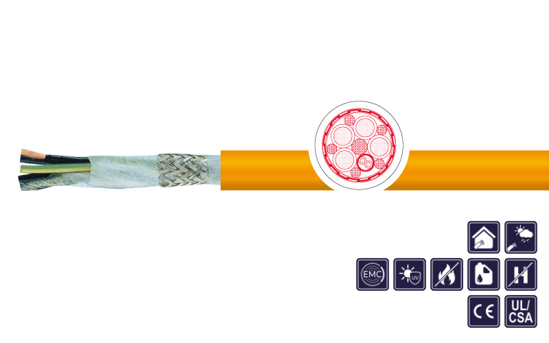17.01.2024.shielded, low capacity power cable, also with 2, 3 resp. 4 control cores for temperature sensors or brake for EMC-compatible connecting between drives and frequency converter for high requirements in drag chain applications, moving drive systems, in the field of robotic technology, in manufacturing plants as well as in dry and humid rooms.