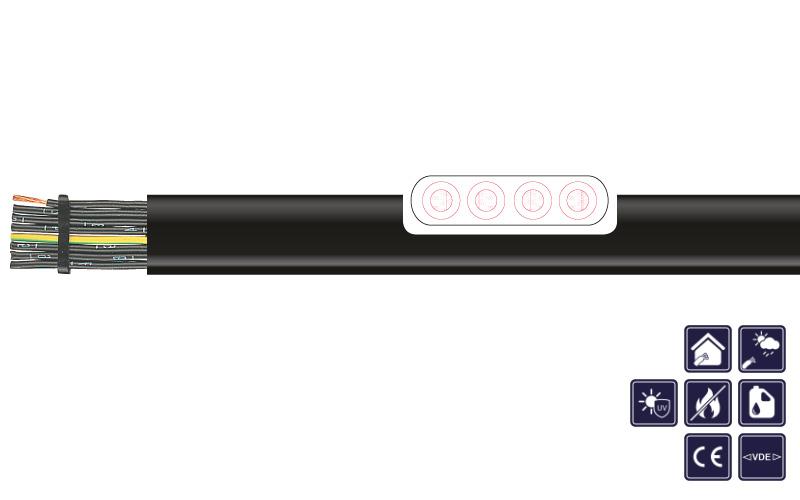 17.01.2024.power and control cable for trolley systems, transfer lines, machine-tools, on hoisting devices, lift, crane and container bridges. Also in applications where cables are bended strongly in permanent moving operation in one level. Suitable for dry, humid and wet rooms and for outdoor use.